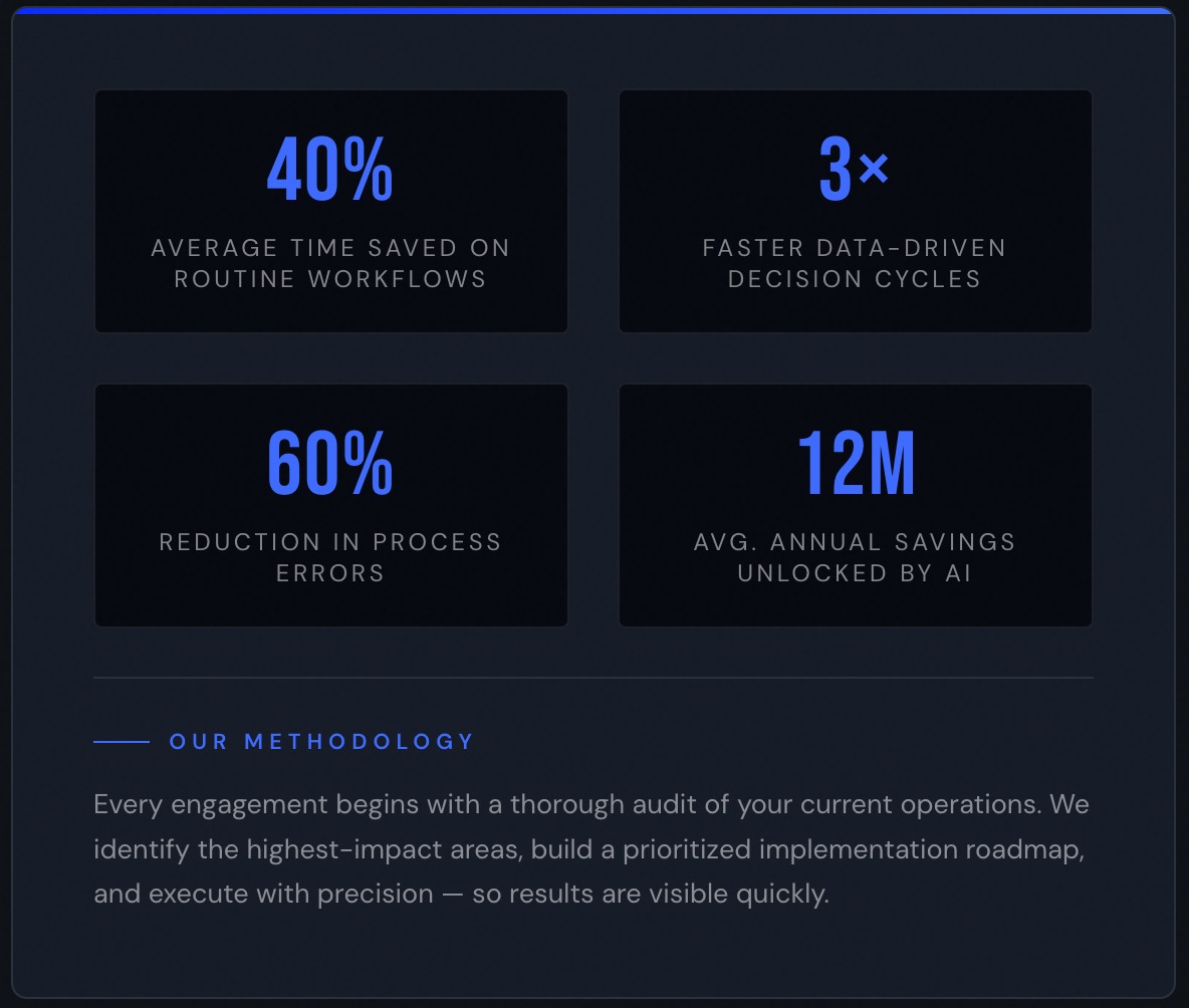 We implement AI in a way that integrates cleanly with your existing operations. No disruption. No guesswork. Just results.